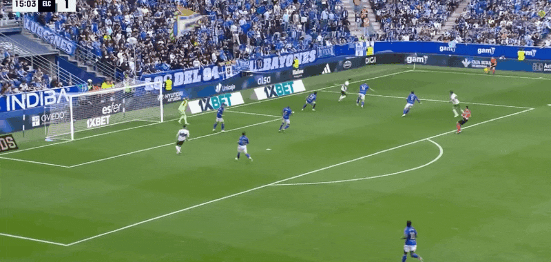 16’罗德里格斯回敲,比利亚尔劲射破门,奥维耶多0-2埃尔切