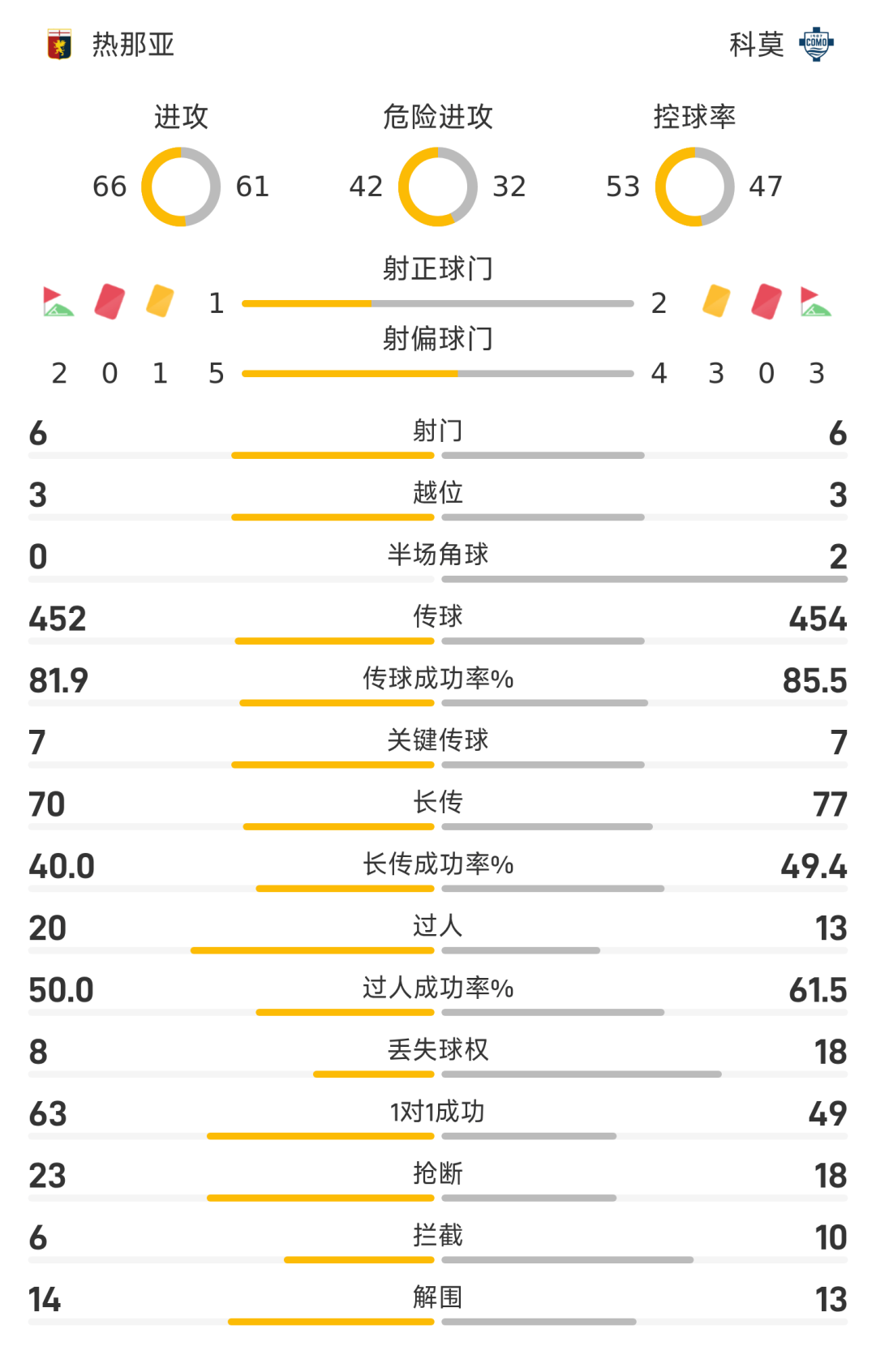 25/26赛季意甲联赛第34轮,科莫2-0战胜热那亚。全场比赛,迪奥恩、杜维卡斯破门建功。