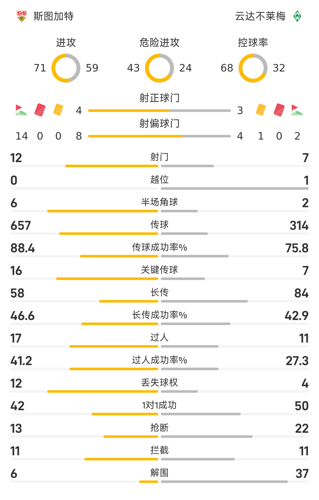 25/26赛季德甲联赛第31轮,斯图加特1-1战平云达不莱梅。全场比赛,德米洛维奇、斯塔格破门建功。