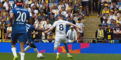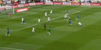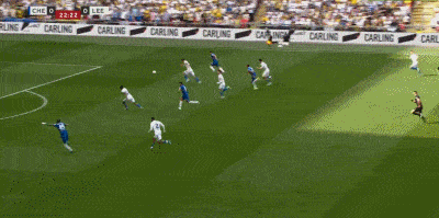 第15分钟,利兹联前场直塞,阿伦森绝佳单刀推射被桑切斯神勇挡出,切尔西逃过一劫。
