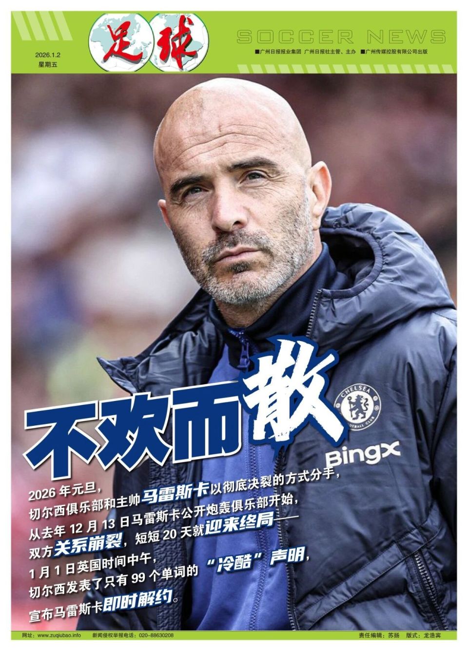 撰稿/寒冰2026年元旦,切尔西俱乐部和主帅马雷斯卡以彻底决裂的方式分手,从去年12月13日马雷斯卡公开炮轰俱乐部开始,双方关系崩裂,短短20天就迎来终局——1月1日英国时间中午,切尔西发表了只有99个单词的“冷酷”声明。
