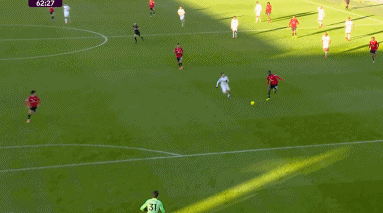第65分钟,齐尔克泽直塞,库尼亚小角度铲射得手,曼联闪电扳平1-1。