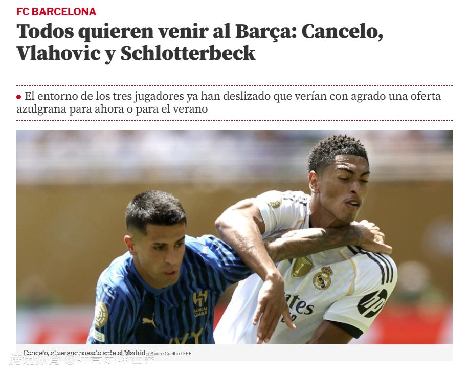 身价1000万的坎塞洛,5500万的施洛特贝克,3500万的弗拉霍维奇——3名球员的总身价刚好是1亿欧元。《世界体育报》表示,巴萨尚未与这3名球员进行接触、谈判,但冬窗、夏窗期间,巴萨可能会有动作。