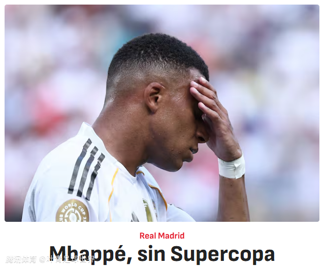 《阿斯报》指出,一直带伤出战的姆巴佩,膝关节受到损伤,没有达到100%的状态。皇马医疗组认为,姆巴佩必须休息,不能参加在沙特举行的西超杯赛事。