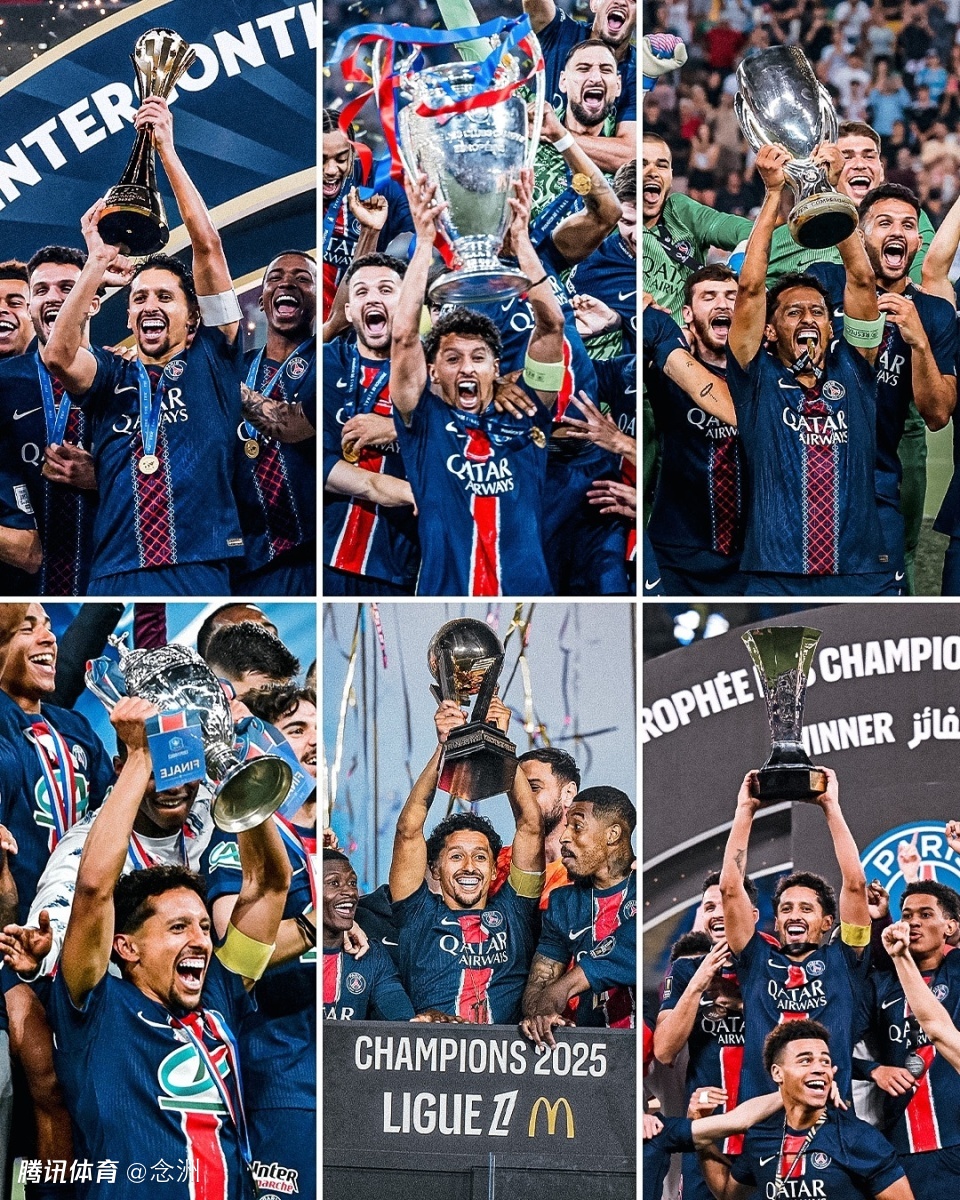 巴黎今年夺得6个冠军,包括欧冠冠军、欧洲超级杯冠军、法甲冠军、法国杯冠军、法国超级杯冠军、洲际杯冠军,世俱杯获得亚军,成为2009的巴萨和2020的拜仁之后,第三支六冠王球队。