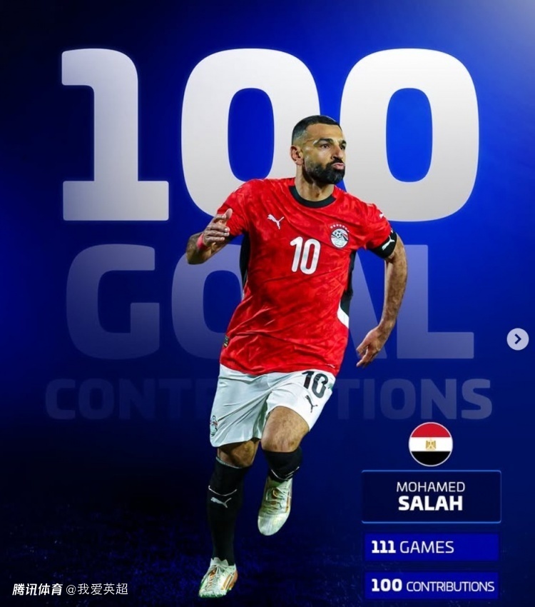 据统计显示,萨拉赫达成埃及国家队直接参与100球里程碑,共计出战111场贡献65球35助攻。