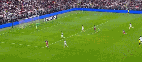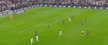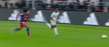 半场补时第47分钟,贡萨洛-加西亚分球,维尼修斯左翼连续过人,一条龙突破内切进球,1-1。