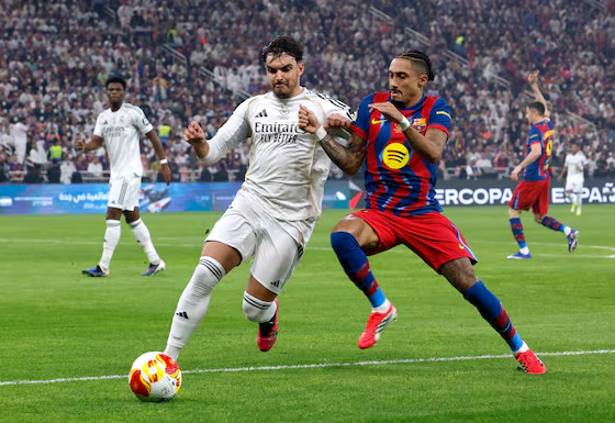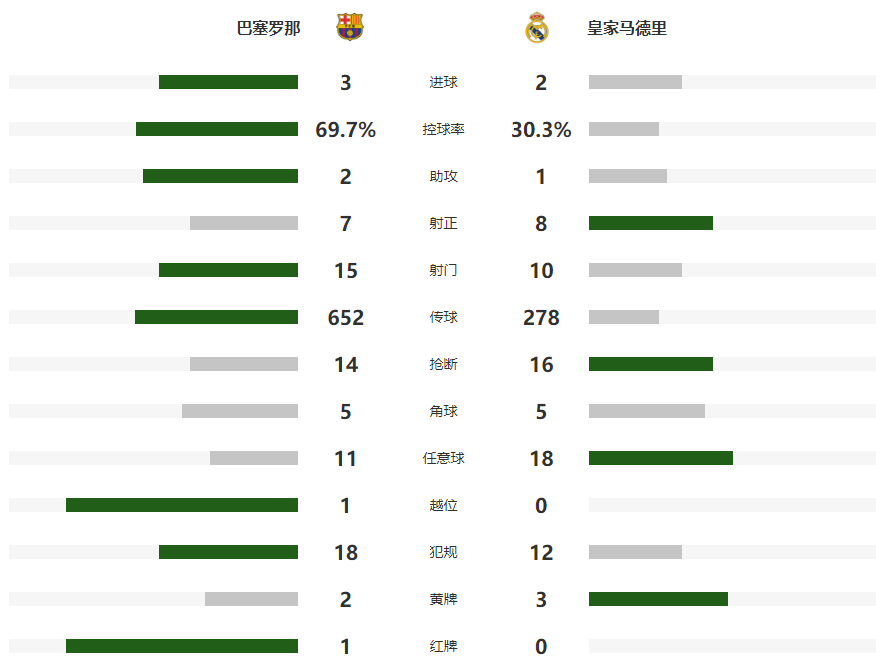 北京时间1月12日凌晨,西班牙超级杯决赛中,巴萨3-2击败皇马,夺得队史第16座西超杯冠军。拉菲尼亚先拔头筹,半场补时阶段两队连入3球,贡萨洛-加西亚传射建功,维尼修斯与莱万破门,下半时拉菲尼亚再度破门,终场前德容被罚下。