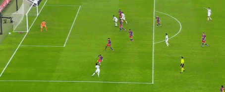 半场补时第51分钟,罗德里戈开出右路角球,赫伊森头球冲顶击中门框弹出,贡萨洛-加西亚倒地捅射,球击中横梁弹入门内,2-2。