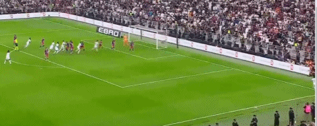 第73分钟,拉菲尼亚弧顶处射门,球折射变线飞入门内,3-2。