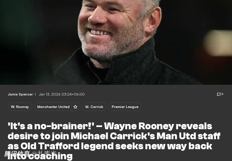 曼联名宿鲁尼在自己的播客节目中表示,如果卡里克邀请自己加入曼联的教练组,他很乐意重返老特拉福德。