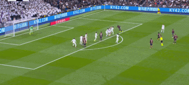 42分钟,卡马文加回追犯规,巴勃罗-马丁内斯主罚禁区线任意球射门稍偏。