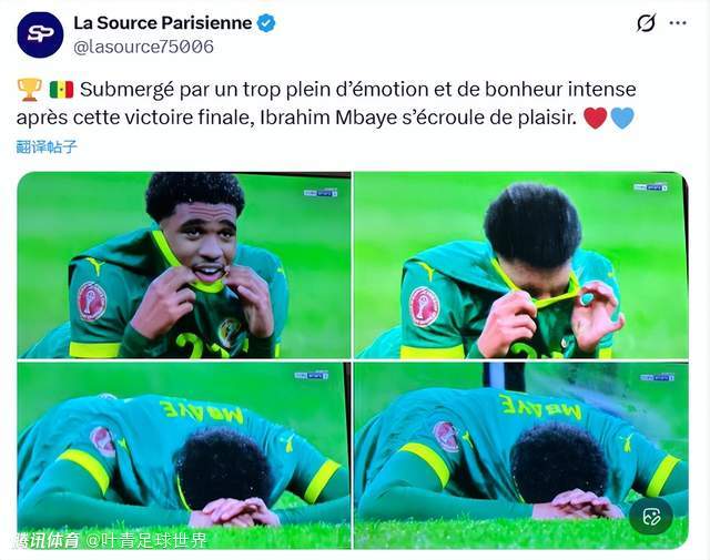 塞内加尔夺冠,17岁的小将姆巴耶趴在草坪上,用球衣遮住面庞。幸福降临那一刻,姆巴耶哭成泪人。