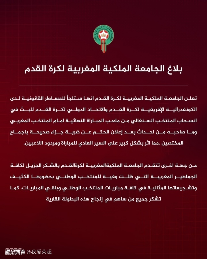 其官方声明中称,塞内加尔队在被判罚毫无争议的点球后,曾威胁罢赛离场,此举影响了比赛走势,这是他们提出重赛诉求的依据。塞内加尔的行为,严重影响了比赛正常进行,以及摩洛哥球员加时赛的状态。