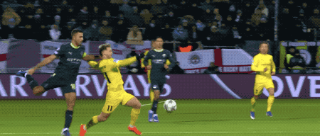 第24分钟,阿莱恩的停球太过拖沓,曼城又被抢断,霍格包抄一蹴而就。