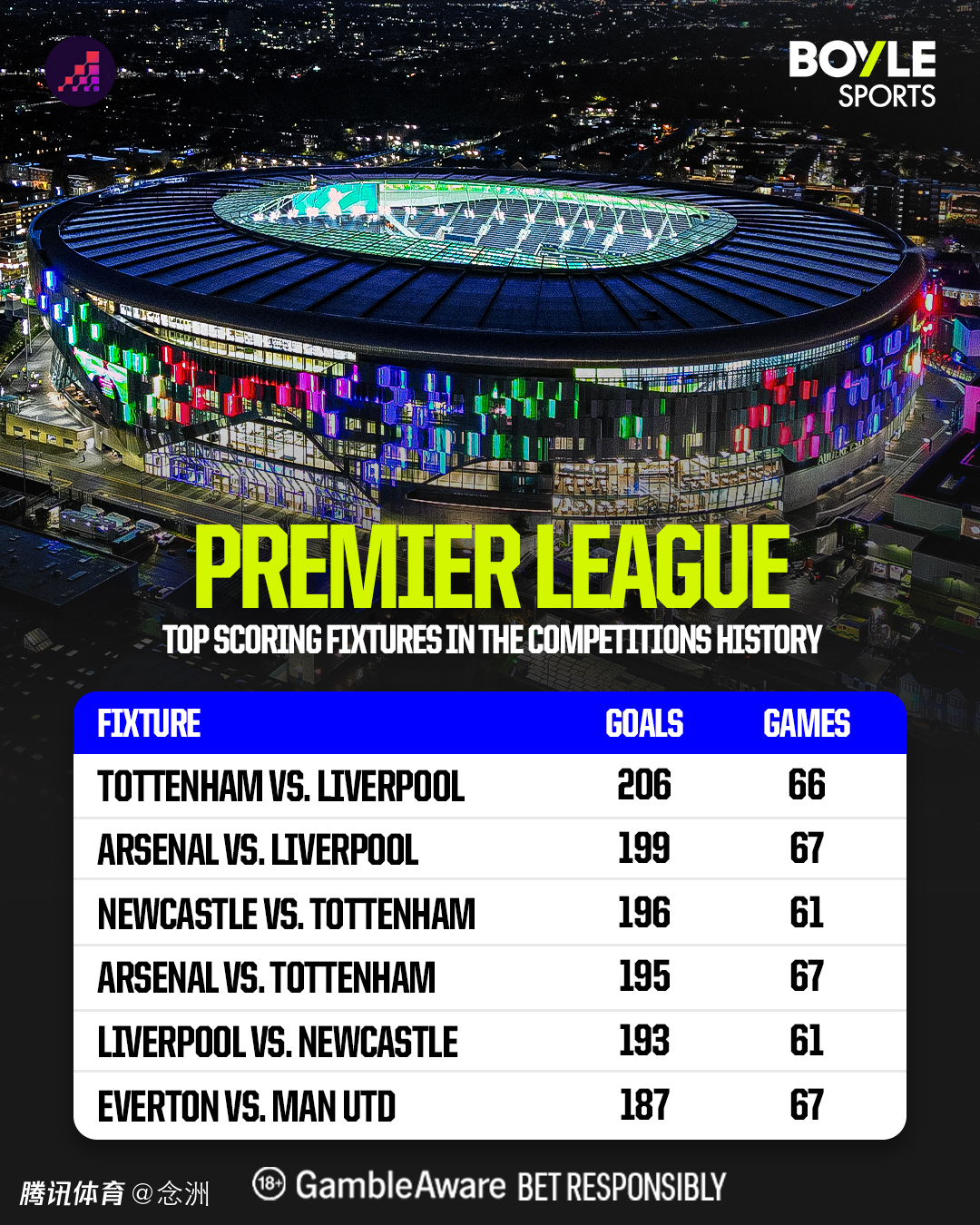 利物浦VS热刺是英超历史上进球最多的对决,66场已经打入206球,最近3场就有21球,场均7球,最近16场有15场至少进3球。