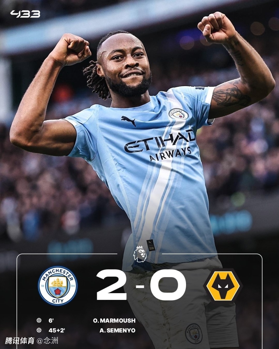 英超第23轮,曼城主场2-0狼队,结束4轮不胜,先赛一场距榜首4分。努内斯助攻马尔穆什破门,马尔穆什立柱,莫斯克拉禁区内手球,VAR介入,主裁判观看大屏幕后示意没有点球,塞梅尼奥再下一城+击中横梁。