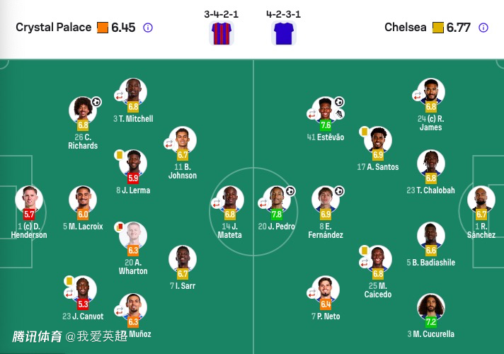 下半场,埃斯特旺助攻,佩德罗抽射为切尔西扩大优势,恩佐点射锁定胜局,沃顿5分钟连吃2黄被罚下,理查兹为水晶宫扳回一城。