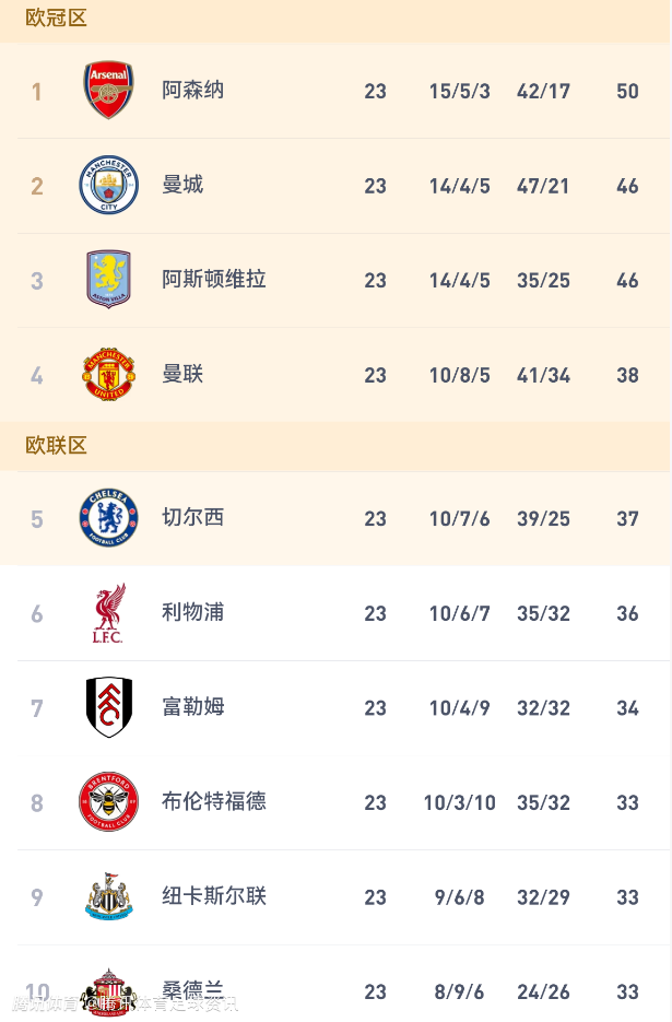 北京时间1月26日,英超第23轮结束了所有比赛,其中排名2-5的都是拿到了胜利,领头羊阿森纳则是输球踩下了暂停键。
