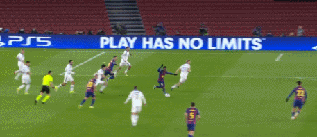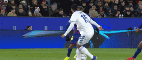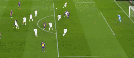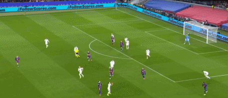 34分钟,奥尔莫右路横敲,埃里克-加西亚弧顶位置远射击中横梁弹出。