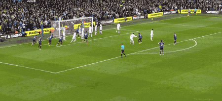 第79分钟,轮到廷贝尔在右路传中了,热苏斯近在咫尺的头球顶得有些正,达尔洛奋力将球托出横梁。