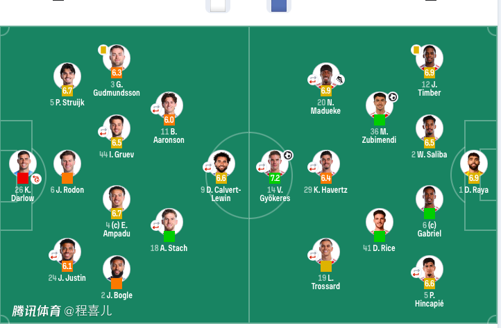 阿森纳首发:1-拉亚、12-廷伯、2-萨利巴、6-加布里埃尔、5-因卡皮耶(75’33-卡拉菲奥里)、41-赖斯、36-苏维门迪、29-哈弗茨(60’8-厄德高)、20-马杜埃凯(60’11-马丁内利)、19-特罗萨德(81’10-埃泽)、14-约克雷斯(75’9-热苏斯)。