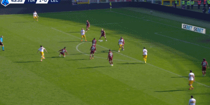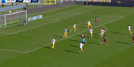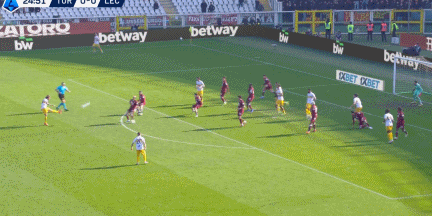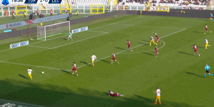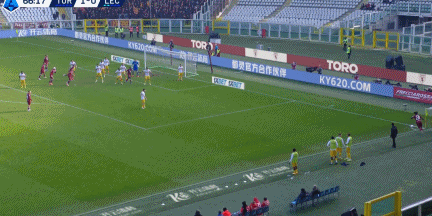 第73分钟,都灵角球再造险情,马里潘近距离头球攻门,莱切后卫门线解围。