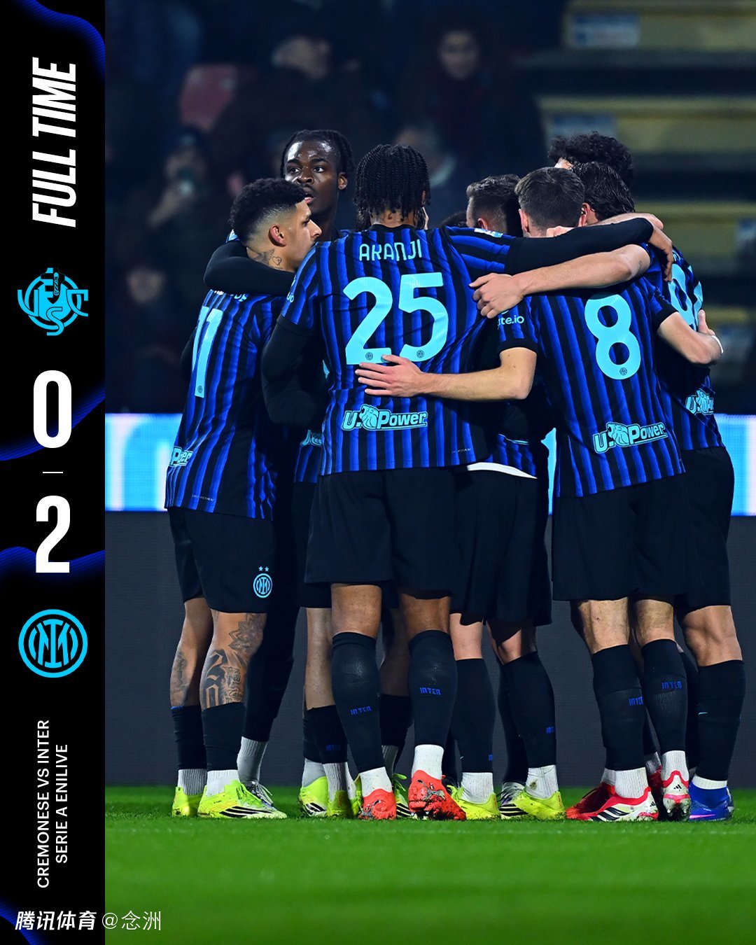 意甲第23轮,国米客场2-0战胜克雷莫内塞,各项赛事三连胜,先赛一场8分领跑。迪马尔科助攻劳塔罗头球破门,杰林斯基世界波。