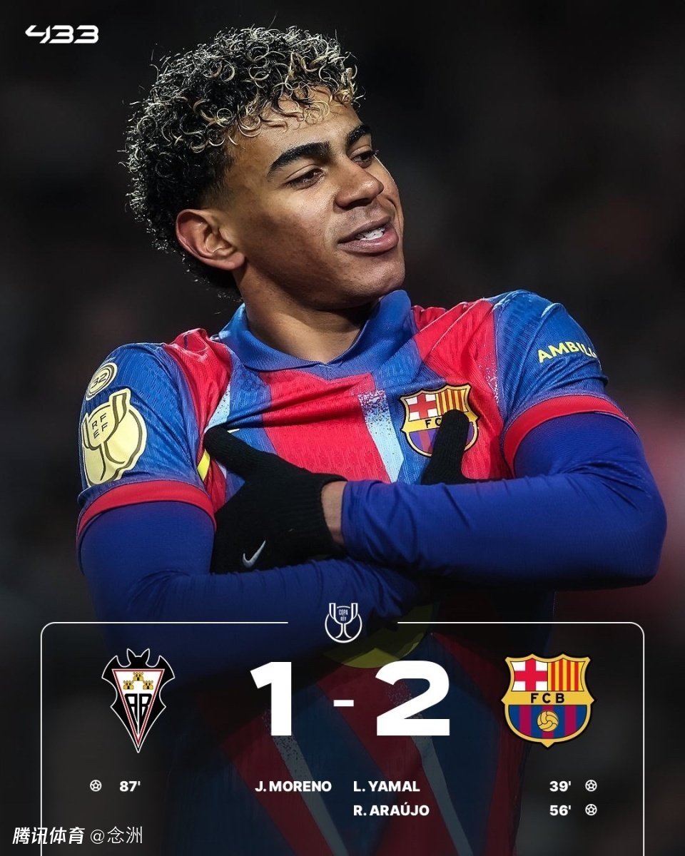 国王杯1/4决赛,巴萨客场2-1战胜阿尔瓦塞特,晋级国王杯四强,取得各项赛事5连胜。亚马尔连场破门,德容助攻,阿劳霍收获回归首球,拉什福德角球助攻,哈维-莫雷诺扳回一城。