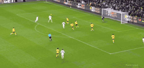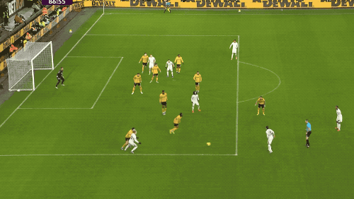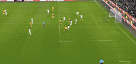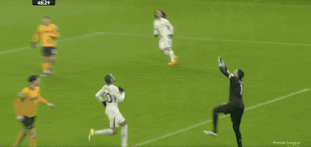 第54分钟,马内原地起脚挑射,皮球击中门框弹了出来,狼队获得角球,阿洛科达尔有充足的时间转身射门,桑切斯暴跳如雷。
