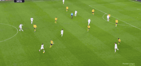 第31分钟,桑托斯的传球直接打穿狼队的防线,古斯托插上的射门,被若泽萨神勇扑出。