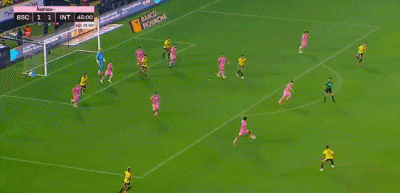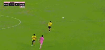 半场补时阶段,梅西在边线附近送出精妙长传助攻,新援贝尔泰拉梅低射得分,迈阿密国际再次将比分超出。