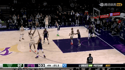 终场哨响,森林狼主场103:100险胜雄鹿。