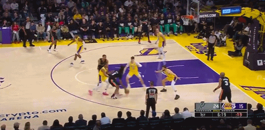 北京时间2月11日,NBA常规赛,马刺对阵缺少詹姆斯、里夫斯、东契奇的残阵湖人,首节比赛战罢,马刺47-30领先湖人,文班亚马迎来爆发,单节轰下25分。