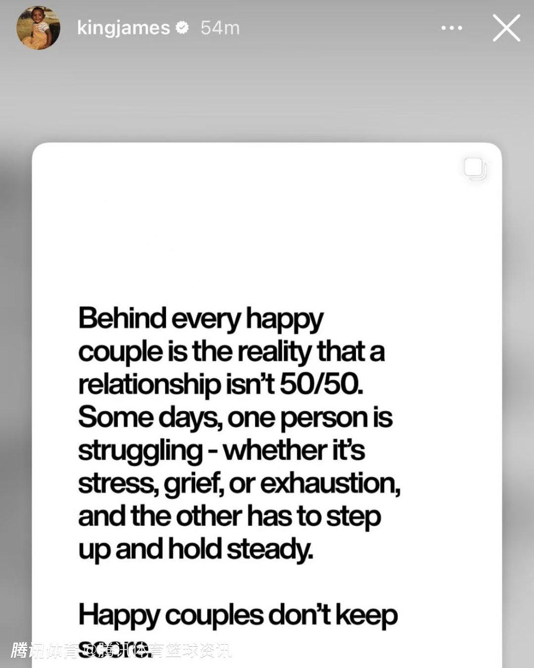 詹姆斯本人随后更新社媒,在比赛开始20分钟前转发了一段意味深长的金句,全文如下: