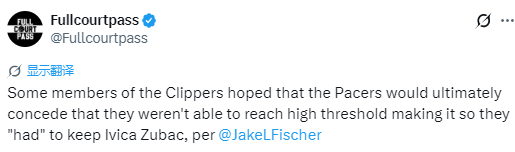 Fischer称,快船之所以最终松口同意送走祖巴茨,是因为步行者满足了他们两个首轮签再加上一些筹码的要价。他表示,即便步行者当时觉得代价太高而放弃,快船内部不少人也不会感到失望,因为这意味着他们能理所应当地留下这位28岁、在队内备受重视的中锋。