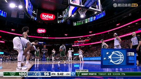 第二节还剩1分13秒时,波特后仰打板命中,紧接着在还剩43秒时,他站上罚球线两罚全中,帮助雄鹿从落后1分反超至领先1分。