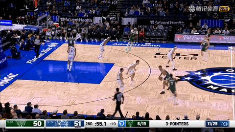半场结束,雄鹿52:51完成反超。