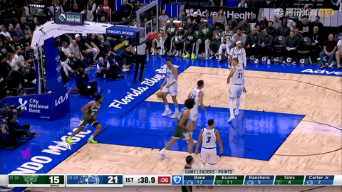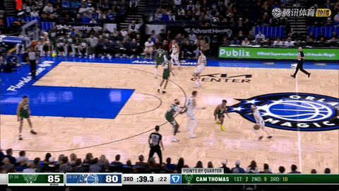 第1节还剩10分31秒时,贝恩接卡特助攻命中三分,吹响魔术反攻号角。