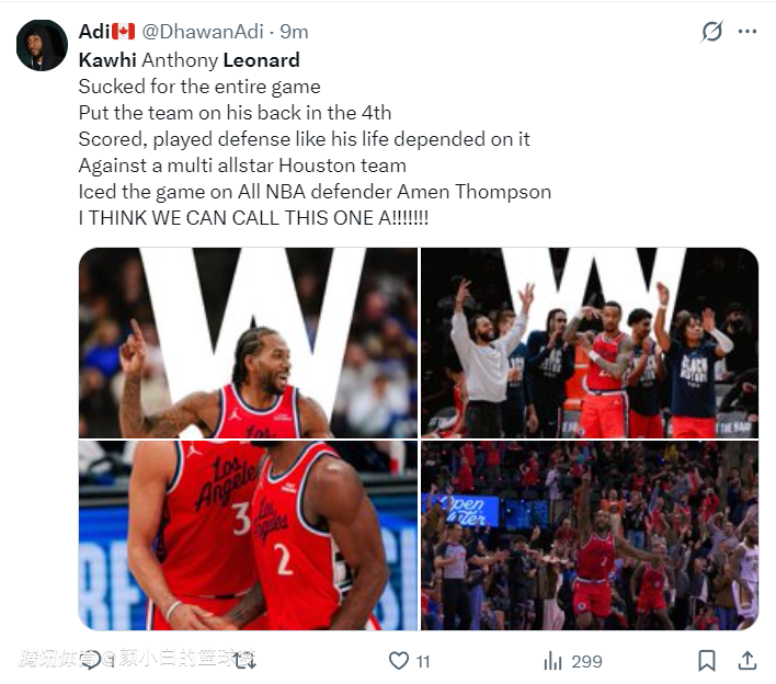快船在一度落后火箭15分的情况下完成了大逆转,休斯顿火箭队出现了多达20次失误是因为他直接败因,而快船赢下比赛的关键就是科怀-伦纳德这位34岁的老将,他在末节不仅拿到19分还命中了制胜的准绝杀2+1跳投。