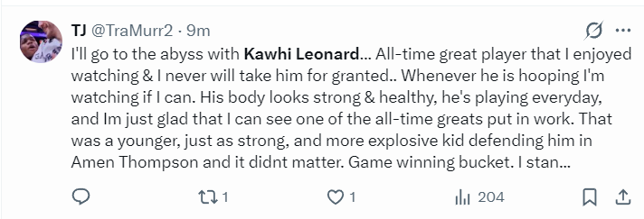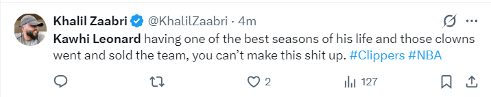 NBA记者Khalil Zaabri赛后写道:卡哇伊打出了职业生涯最高光的一个赛季,但快船管理层那些蠢材却送走了多位核心球员,这简直太荒唐了。