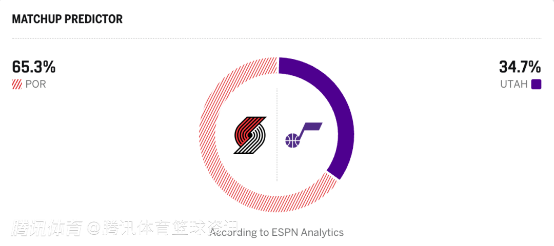 开拓者65.3%,爵士34.7%