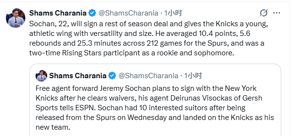 北京时间2月13日,据名记Shams报道,杰里米-索汉计划在度过澄清期后加盟纽约尼克斯。
