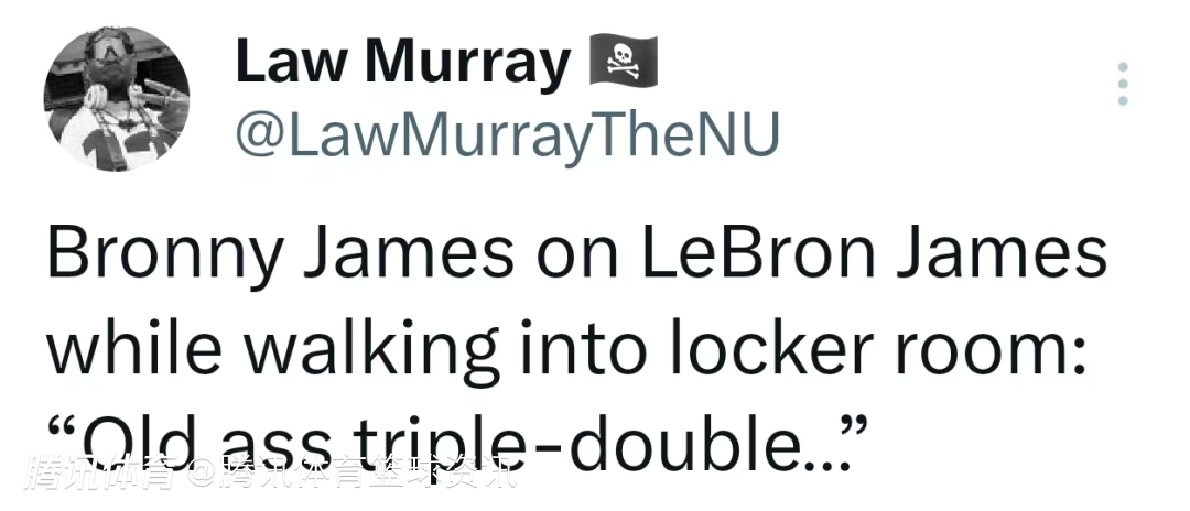 詹姆斯之子布朗尼在走进更衣室时对詹姆斯说道:“一把年纪还拿三双。”