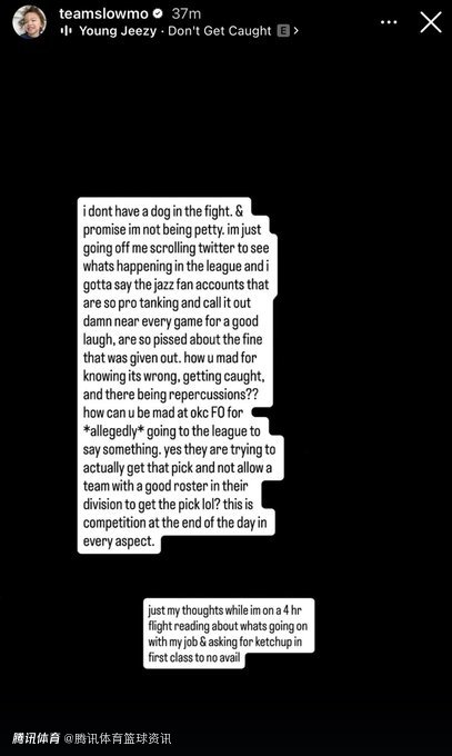 “我在这件事里没有任何立场,也绝非斤斤计较,只是刷推特看到联盟动态有感而发。不少爵士球迷账号此前一直支持摆烂,几乎每场都拿这事开玩笑,如今球队被罚却十分生气。明知做法违规,被抓到就要承担后果,有什么好生气的?也没必要怪雷霆管理层(据称)向联盟举报,他们就是想保住选秀权,不想让同区有竞争力的球队拿到这个签位,说到底,这就是全方位的竞争。”