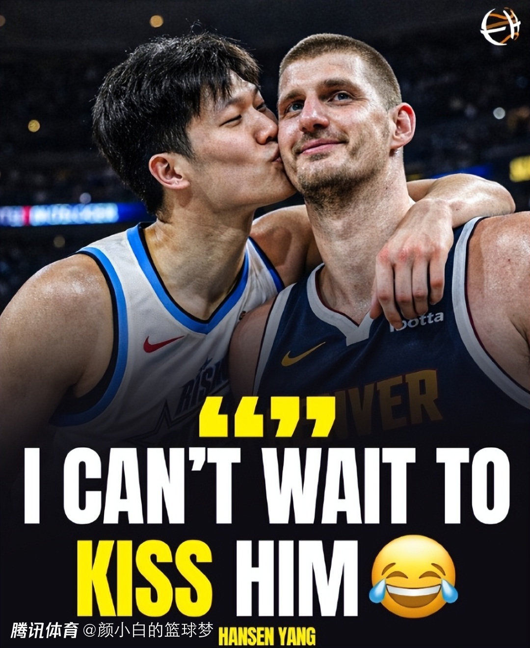 在赛后杨瀚森谈到在全明星即将见到自己的偶像尼古拉-约基奇,杨瀚森说道:我已经迫不及待想要亲吻他了,哈哈哈。