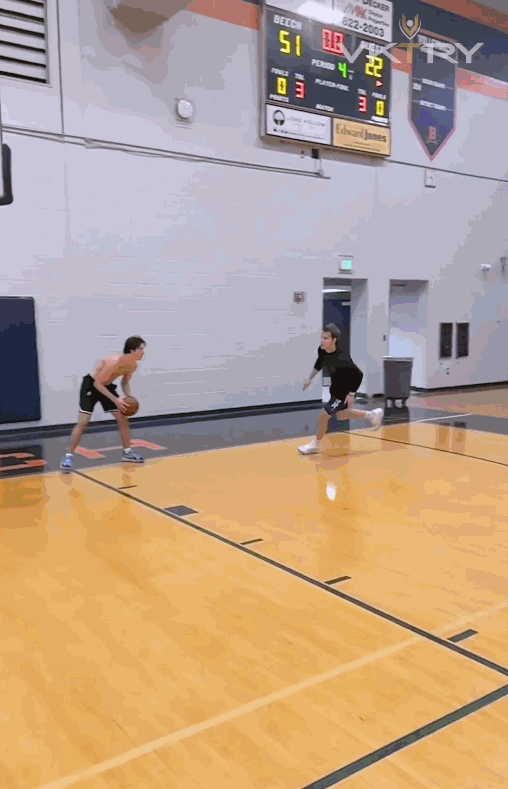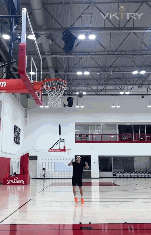 从视频中可以看到,麦克朗的第一个扣篮动作就创意十足,他飞跃了一人的同时,抡圆手臂,反手将另一名助手举在篮筐附近的球扣进。