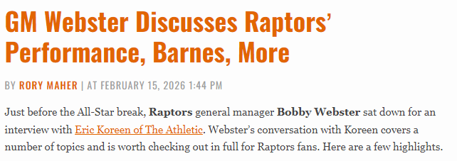 北京时间2月16日,猛龙总经理鲍比-韦伯斯特接受The Athletic采访并涵盖多个话题。