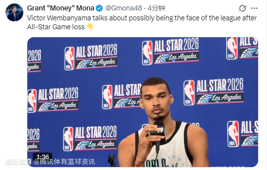 北京时间2月16日,NBA全明星正赛全面开打,世界队45-48不敌美国条纹队。本场比赛中,文班亚马出战10分05秒,全场8中6砍下19分。赛后,他接受媒体采访。