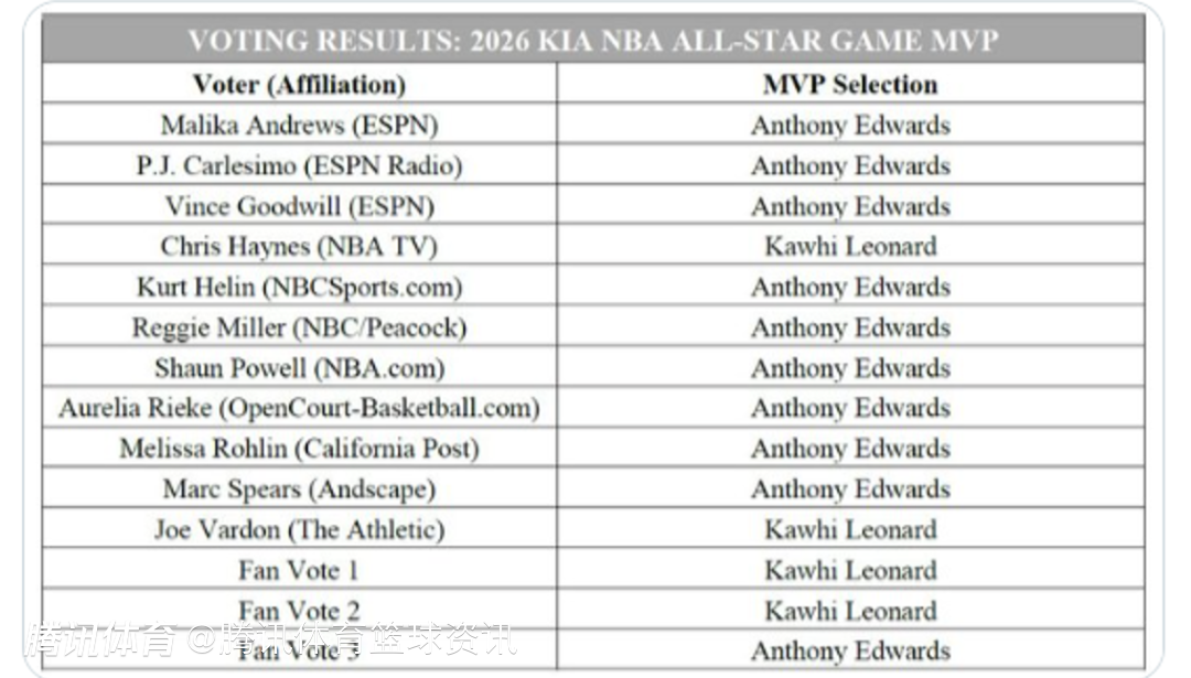 赛后,全明星MVP票选具体票数出炉,华子获得了14张票选的10票,小卡获得其余4票。